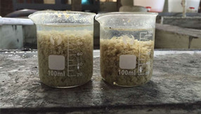 綠森環(huán)保技術(shù)團(tuán)隊(duì)?wèi)?yīng)某化妝品客戶要求上門技術(shù)服務(wù),現(xiàn)場(chǎng)給客戶廢水破乳劑中試。客戶廢水:沐浴露廢水,特點(diǎn):含有乳化劑、增稠劑、抗氧化劑、防腐殺菌劑和香精色素等,廢水顏色:淺黃色。使用破乳劑破乳后廢水上清液清澈透明,如下圖       &nbs···